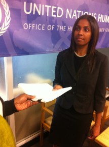 Janis in DC filing a petition to the UN. Photo: http://www.FREEJasonP.com